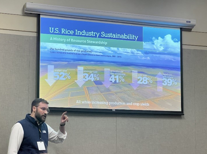 美国稻米协会国内推广副总裁Cameron Jacobs在阿肯色州学校营养协会年会上发表演讲,重点介绍了美国本土大米在学生供餐计划中的作用,展示了如何利用阿肯色州本地大米强化儿童营养项目,并分享了学校营养管理人员最大化发挥大米作为食材价值的多种途径。